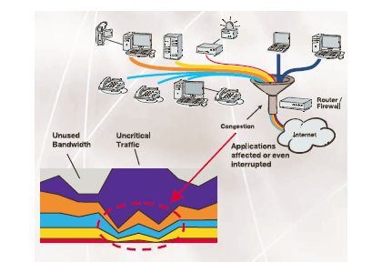 | Gestione dei flussi dati : Le applicazioni di rete competono tra loro nel conterdersi la banda disponibile: se alcune applicazioni sono "mission critical", la maggior parte non lo sono e queste ultime possono causare un semplice rallentamento delle prime fino a determinarne la caduta delle sessioni. Ciò che è indispensabile per risolvere i problemi di congestione non è semplicemente l'aggiunta di ulteriore banda ove si presentino i colli di bottiglia ma bensì prevedere un maggiore controllo sul traffico generato dagli applicativi di rete. |