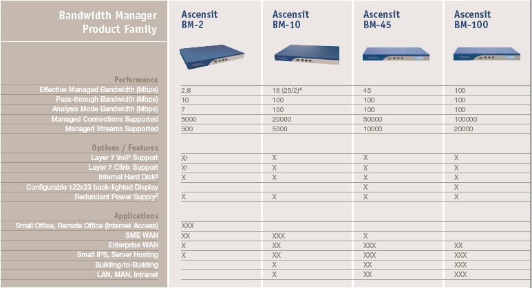 I prodotti Ascensit Bandwidth Manager sono apparati molto potenti progettati appositamente per rispondere alle esigenze della media impresa e dei piccoli provider che necessitano di una soluzione per il monitoraggio e la regolazione dei flussi di rete su connessioni a banda larga. La famiglia di prodotti Ascensit BM risolvono le problematiche di controllo del traffico e di gestione della banda per il mercato delle PMI, analizzando, controllando e ottimizzando i flussi di rete in modo da prevenire o risolvere particolari problemi o colli di bottiglia.