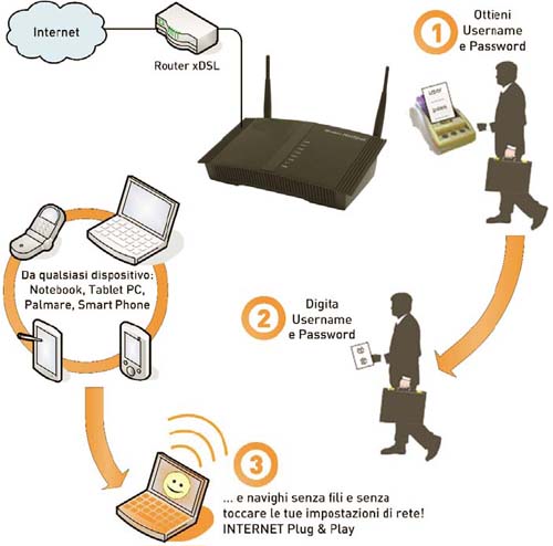 Il tutto nel rispetto della normativa vigente in materia di antiterrorismo (L.155/2005 – Decreto Pisanu) e rispetto della privacy (Dlgs 196/2003) senza richiedere onerose e complesse procedure per la registrazione dei clienti. |