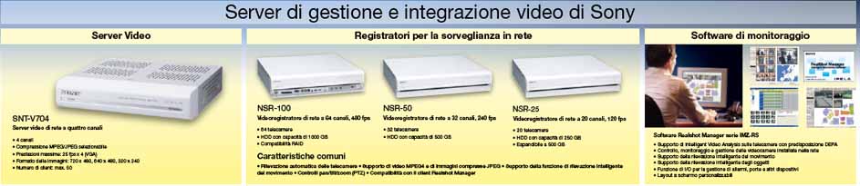 Questo sistema "intelligente" presenta tre nuovi elementi e incorpora le network camera e il software di monitoraggio Sony in una piattaforma IT estremamente avanzata.