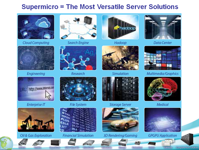 SuperMicro: server, workstation e storage flessibili e perfomanti per ogni tipo di esigenza Super Micro Computer, Inc. (NASDAQ: SMCI), azienda leader globale nella realizzazione di server con elevate prestazioni ed elevata efficienza, tecnologia di storage e soluzioni di calcolo ecologiche sigla un accordo di partnership con Alias, distributore a valore in grado di supportare i propri partner di canale in tutte le fasi di vendita, dall'analisi alla progettazione fornendo supporto sia di pre-vendita che di post vendita. Supermicro® è innovatore leader di tecnologie di server ad alta efficienza e a prestazioni elevate e primario fornitore di server avanzati Building Block Solutions® per Data Center, Cloud Computing, infrastrutture IT, Hadoop/Big Data, HPC e sistemi integrati di virtualizzazione. Supermicro è impegnata nel rispetto dell'ambiente con l'iniziativa "We Keep IT Green®" fornendo ai clienti le soluzioni più efficienti ed ecologiche disponibili sul mercato. L' offerta SuperMicro comprende quindi una ricca linea di soluzioni server, blade, storage e networking ottimizzate per infrastrutture IT, centri dati, cloud e applicazioni embedded. I vantaggi offerti da Supermicro comprendono un'architettura basata su standard aperti, tecnologie avanzate prime sul mercato, software di gestione integrato nei server, assistenza e supporto onsite e un ecosistema in crescita composto dai migliori partner e certificazioni a livello software. La gamma impareggiabile di prodotti SuperMicro permette di ottenere il TCO minimo con soluzioni perfettamente abbinate e ottimizzate per applicazioni su qualsiasi scala. Questo, assieme alla nostra esperienza nella progettazione di sistemi, ai vantaggi in termini di time-to-market e all'espansione della rete di assistenza e supporto, significa che Supermicro sta facendo avanzare il futuro dell' IT con soluzioni complete end-to-end.